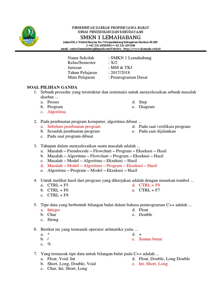 Contoh Soal Pemrograman Dasar Kelas 10 Semester 1 Kurikulum 2013 / Soal Teknik Pemrograman Smk Kelas X Masnurul : Soal pemrograman dasar kelas x.